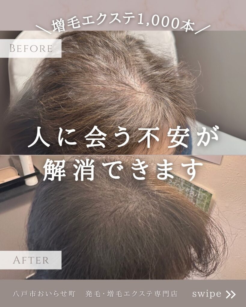 分け目の薄さが気になって、人の視線も怖くて…。でも、サロンケアを始めて6ヶ月。気づいたら帽子がなくても平気になりました!本当にうれしかったです。